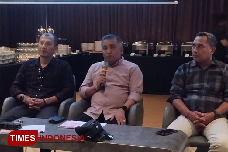 TIMES Denpasar/Ketua bersama Komisioner KPU Bali saat menjabarkan evaluasi hasil Pemilu 2024. (FOTO: Susi/TI Bali)